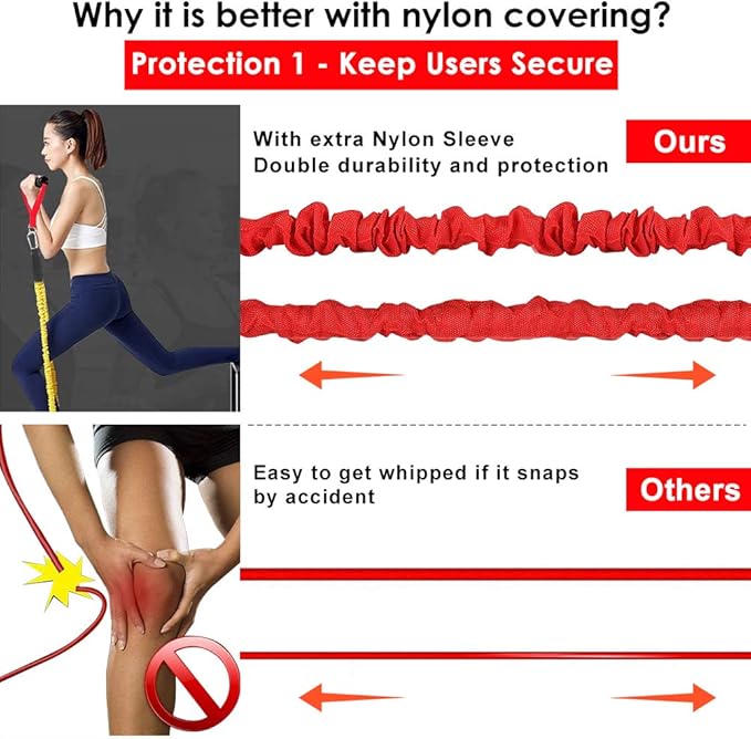 - ANTI-SNAP DOUBLE PROTECTION - Build with high quality protective Nylon sleeve and premium natural latex which prevents the resistance tube from being damaged, and provide you double protection in case the band were to snap, our elastic exercise bands serve long time and provide the maximum resistance.