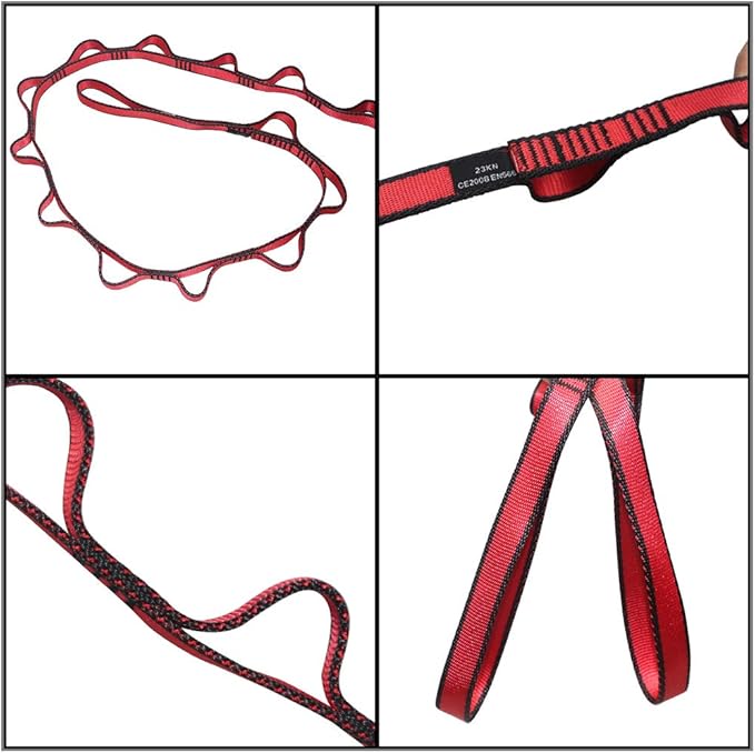 - The daisy chain is not only for climbing, but also for camping(you can attach carabiners to the loops and then hang your outdoor tools with the loops. When on camping trips, you can hang hammocks and or swings with it)