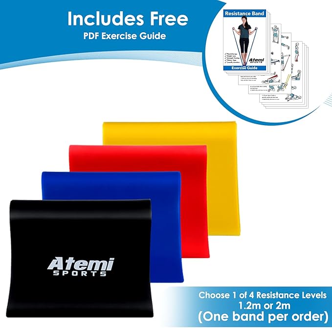 - LONG RESISTANCE BANDS – each order includes either a single band or a set of 4, in lengths of either 4ft or 7ft (make your selection under “Color” and “Size”). Each order includes a workout guide. The stretch bands are available in four levels of resistance: #1 Yellow (Light / 6.8LB); #2 Red (Medium / 8.9LB); #3 Blue (Heavy / 11.1LB); #4 Black (X-Heavy / 16LB)