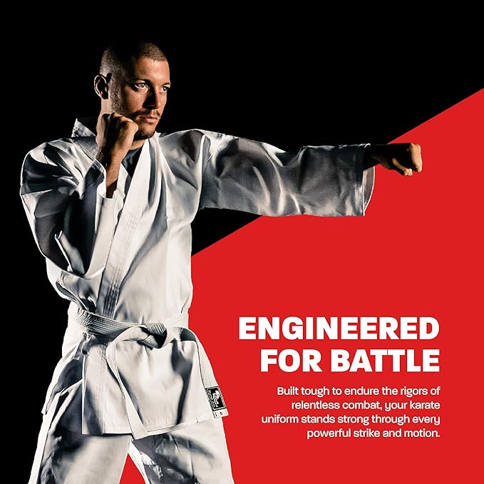 - Built to Conquer. Unleash your inner warrior with every strike, kick, and block. Our karate gi is crafted from lightweight 220 GSM, 8oz poly-cotton. The karate pants are reinforced from ankle to shin.