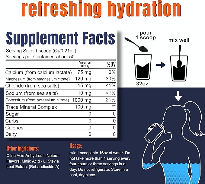- PEAK HYDRATION & CELLULAR ENERGY - Electrolytes play a crucial role in supporting cellular energy, muscle function, and nerve health. Our potassium-rich electrolyte powder may help rejuvenate cellular energy, ensuring you stay active and energetic. This soluble, performance electrolyte serving delivers 1,000mg of potassium, helping you reach the recommended daily intake of 4,700mg of potassium citrate.
