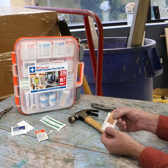 24/7 First Aid OSHA Compliant First aid Kit, All-Purpose 100-Person Emergency First Aid Kit for Business, Home, and Car in Plastic Case with Easy-Slide Latches, 336 Pieces