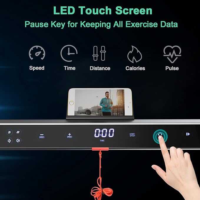 - ๐ฆ๐ถ๐บ๐ฝ๐น๐ฒ ๐ข๐ฝ๐ฒ๐ฟ๐ฎ๐๐ถ๐ผ๐ป: This under desk treadmill features LED touch screen, offering real-time feedback of calories, pulse, time, distance and speed. The treadmill could also be control and adjust via App and remote. Furthermore, all sports data will be kept when you press the pause key for water break and you can switch speed unit between mile and km in APP.