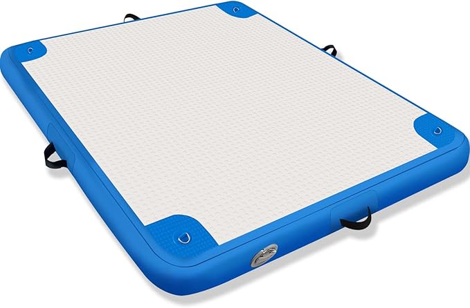 - 【DURABLE,NON-SLIP,SAFE】 The inflatable dock platform is made of super-tough drip-stitched material, UV resistant heavy duty PVC, and non-slip pads. Durable enough to support kids and adults to play without worry about falling into the water.
