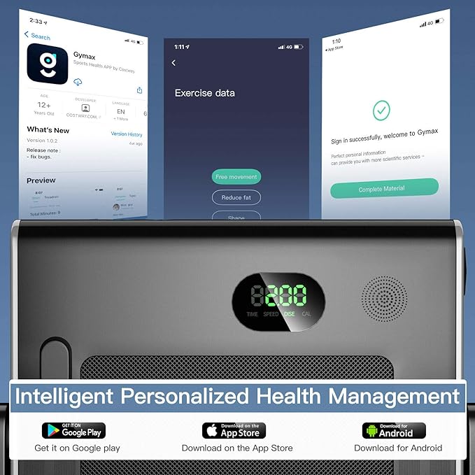 - 【Spacious Running Belt & LED Display & Phone Bracket】 Excellent load-bearing capacity together with the wide and non-slip running area will improve safety during your workout. The LED display helps you clearly see your movement time, speed, distance and calories. Besides, the phone holder allows you to exercise while entertaining.