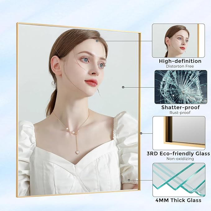 - ❤️【Premium Material】- Made of premium aluminum alloy and imported mirror materials, the mirror is more durable than those made of wood or rubber. The mirror edge is protected by the Aluminum frame from hurt and ensure beauty.