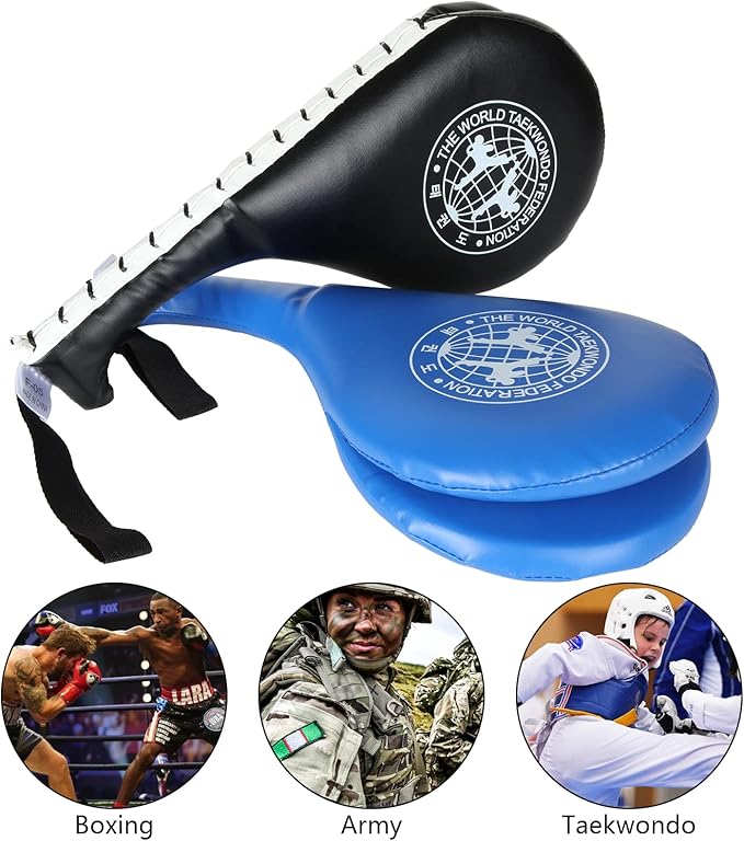 - 4 Pcs Striking Pads: Come with 4Pcs taekwondo paddles, a great choice for practicing low and high kicks. Perfect for taekwondo fans or other martial arts exerciser to train, enhance speed, accuracy and strength