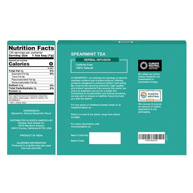 - HAND-HARVESTED SPEARMINT TEA - Experience the unparalleled freshness of Spearmint Tea Bags, sourced from India, where the climate and soil yield the highest essential oil content with a sweet & refreshing aroma, ensuring a revitalizing experience with every cup.