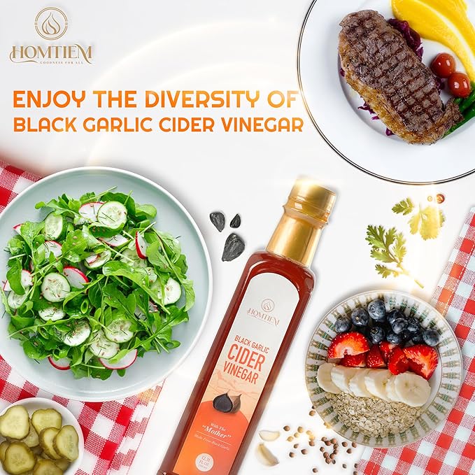 - HOMTIEM BLACK GARLIC CIDER VINEGAR - A naturally fermented vinegar crafted from our healthy Black Garlic, infused with Cider Vinegar to enhance flavors and provide additional health benefits, giving you a boost in overall well-being.