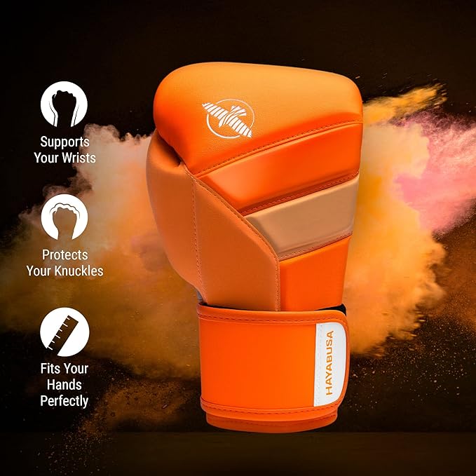Hayabusa T3 Boxing Gloves for Men and Women Wrist and Knuckle Protection, Dual-X Hook and Loop Closure, Splinted Wrist Support, 5 Layer Foam Knuckle Padding