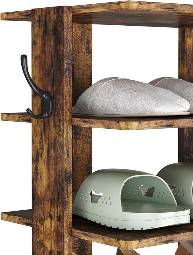 - Sturdy and Compact Shoe Organizer: Made of wood, this skinny shoe tower is more durable and sturdier for long-term use. It is an ideal storage solution for any narrow or tiny space around your home. Unlike the rigid metal shoe racks, this one is specially designed with a look of wood accent to be stylish and natural enough to suit any home decoration.