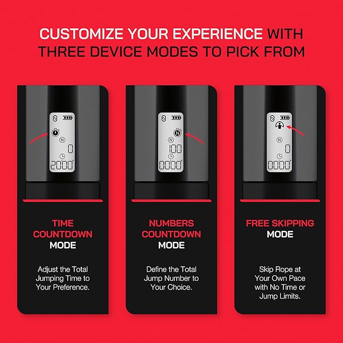 - [POWERFUL MULTI-MODE DESIGN] – Featuring 2 different modes to suit your workout style, our smart fitness jump rope 2 in 1 cordless skipping rope allows you to choose between the classic 3m rope or go ropeless with the shortballs for a unique experience. Equipped with a rechargeable 60mAh lithium cell battery (Type C), your smart jump rope is sure to perform under intense conditions.