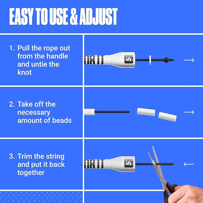 • ADJUSTABLE LENGTH: The easily customizable length (128 inch) makes the jump rope suitable as a jump rope for men or jump rope for women.