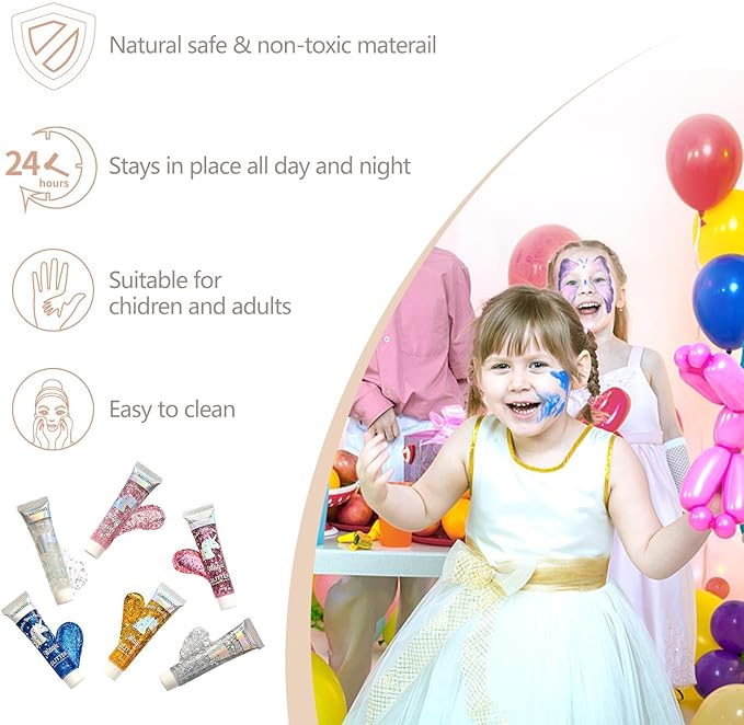 - Safe for All Skin Types: Made with 100% safe, natural ingredients, our glitter gel is vegan, cruelty-free, and hypoallergenic, gentle on your skin, and perfect for all ages, including kids