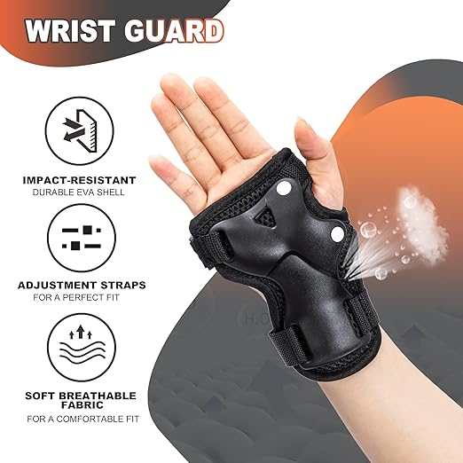 - 【DURABLE & COMFORTABLE】: We prioritize safety and comfort in our protective gear. The knee pads and elbow pads feature an EVA shell that effectively absorbs external impacts, while the breathable fabric lining and mesh surface provide ventilation and a snug fit. The 10mm PEF high foam cotton interior further reduces impact and ensures optimal protection.