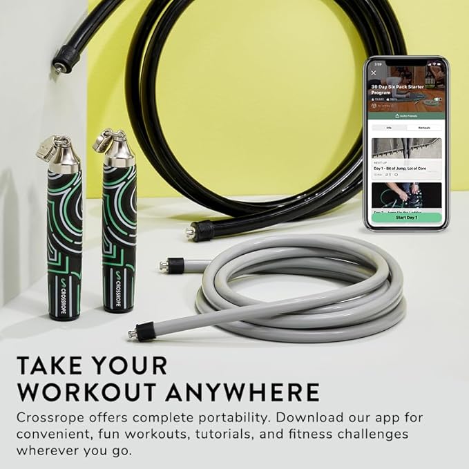 Crossrope Get Strong Set - Weighted Jump Ropes for Strength Training - Improve Power and Endurance in a Fun Jump Rope Workout - 1LB and 2LB Ropes with Power Handles