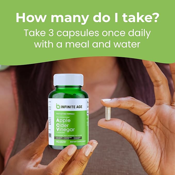 - Apple cider vinegar capsules - Embrace a holistic approach to your daily health regimen with Infinite Age Apple Cider Vinegar Capsules. Our premium ACV formula is designed to support overall wellness, providing a natural boost to your body's systems. These capsules are your ally in maintaining a balanced lifestyle.