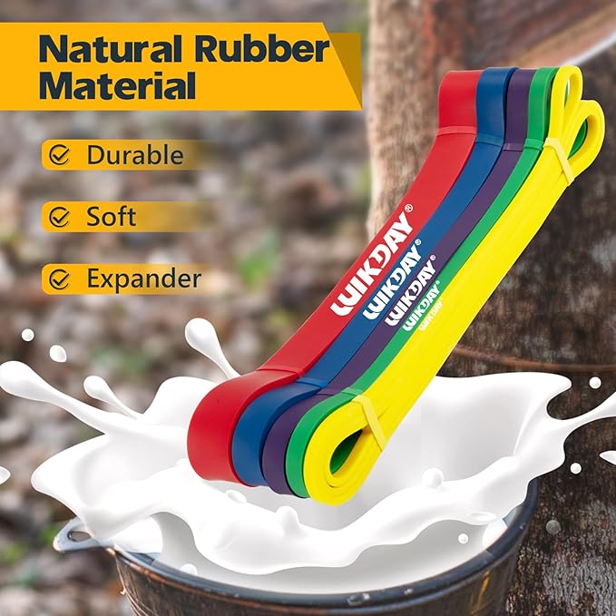 - [Solid and Hard-wearing]--Our heavy duty resistance bands are crafted from natural rubber material, ensuring they are non-toxic, odorless, anti-slip, and resistant to curling. With our pull-up assistance bands set, you can be confident they won't break, providing safety and multifunctionality. Whether used with gym equipment, strength training gear, workout bands, boxing equipment, or stretching straps, our product excels in all applications.
