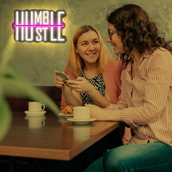 HUSTLE Neon Signs for Wall Decor USB Powered With Dimmable LED Neon Lights for Bedroom Man Cave Dorm Gym Room Office Room Humble Led Neon Light Sign for Party Decorations 5v (16.14 "X9.84")