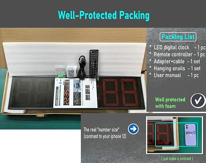 - 【Multi-functional Wall Clock】With aluminum made main body, acrylic surface cover, 5.3’’ extra-large numbers, and double buzzers (max volume is 160 DB), this clock has 8 level brightness adjustment, 3 level buzzer volume adjustment, and one-click mute button. The built in intelligent RTC clock calibration chip ensures the time accuracy, and the 32-Bit ARM Cortex-M Core Master Chip makes it more stable & quicker. It can also display the year/date/week/temperature by one button, and display automatically when the time comes to half clock & integral clock. The clock has 12H/24H modes and power-off memory function for personal settings & time keeping, time shows with seconds for 12H/24H modes.