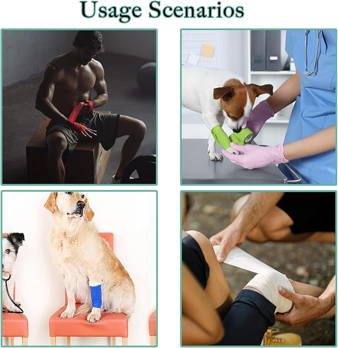 - 【Multi-purpose】the self-adhesive bandages can provide good support and protection for the human body, such as ankles, wrists, elbows, knees, feet, etc. You can use it as regular exercise tape, wrist wrap, ankle bandage, and something to increase friction; Self adhesive bandages can also be used for dressing pet wounds.