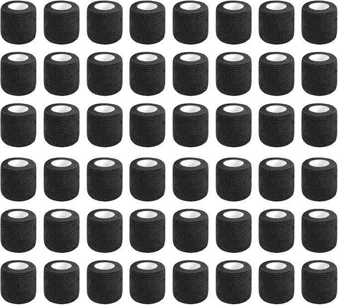 48 Rolls Self Adhesive Bandage Wrap 2 inch Cohesive Bandage Wrap Stretch Bandages Wraps Tape Black Elastic Self-Adherent Tape for Wrist Ankle Sports Swelling Sprains