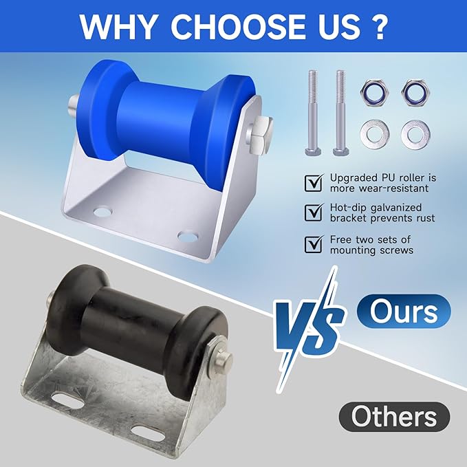 - Upgrade your boat trailer with the Blue 4-inch Keel Roller Assembly Kit specifically designed for boat trailers, featuring durable Galvanized Steel components.