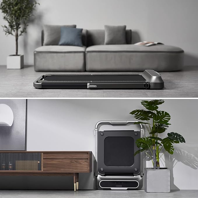 - Space-Saving Foldable Storage - Both WalkingPad R1 and R2 feature our patented fold-and-stand design: the deck folds in half and stores upright against a wall or in a corner. This clever design cuts the footprint dramatically and makes it easy to keep your home organized, even in small apartments or shared spaces.