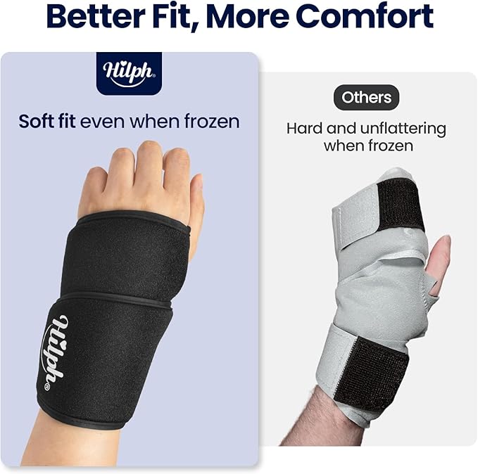 - Upgraded Super Soft & Strechable Material: Hilph wrist ice pack wrap is made from an advanced solid gel that remains soft and flexible even when frozen, providing a comfortable and even cooling experience. Perfect for wrist pain relief and carpal tunnel syndrome.