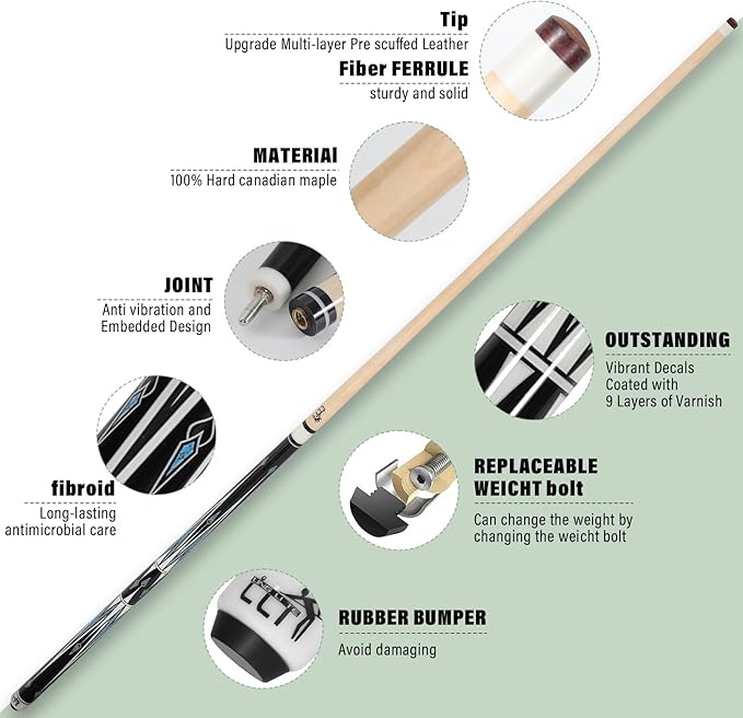 • Precision-Crafted: This 58-inch 2-piece maple pool cue stick is expertly crafted for superior performance and durability.