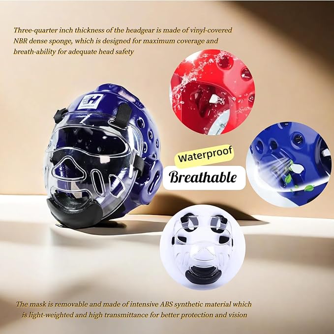 - REMOVABLE MASK: removable mask is made of ABS intensive synthetic material which is light-weighted and highly translucent; with a better protection and vision, it is very suitable for Taekwondo Karate practitioners of children and teenagers .