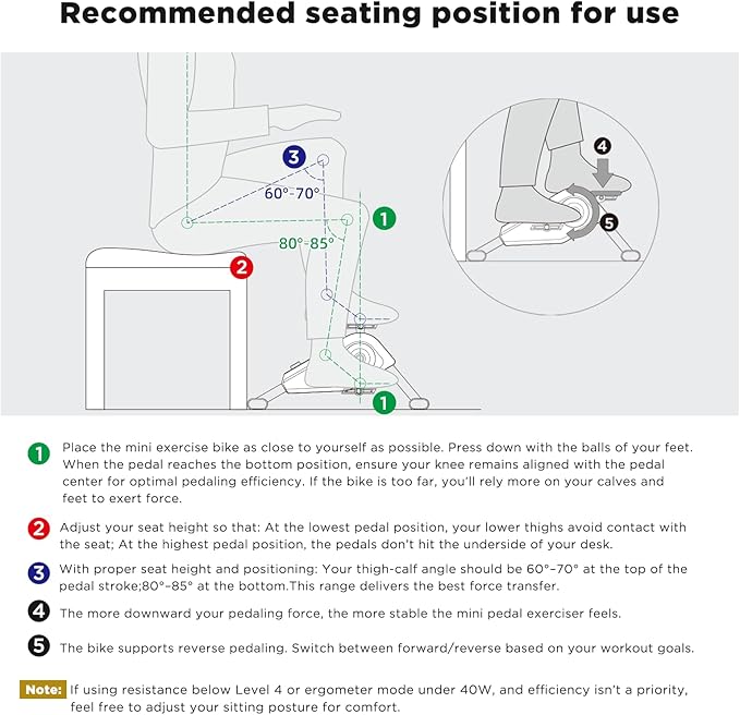 - 【Dual Resistance Modes】CYCPLUS mini pedal exerciser offers a dynamic workout experience with two modes. Manual 10-level adjustment for custom training or ERG Mode (30W-100W) to auto-adjust resistance based on cadence—perfect for targeted fitness goals.