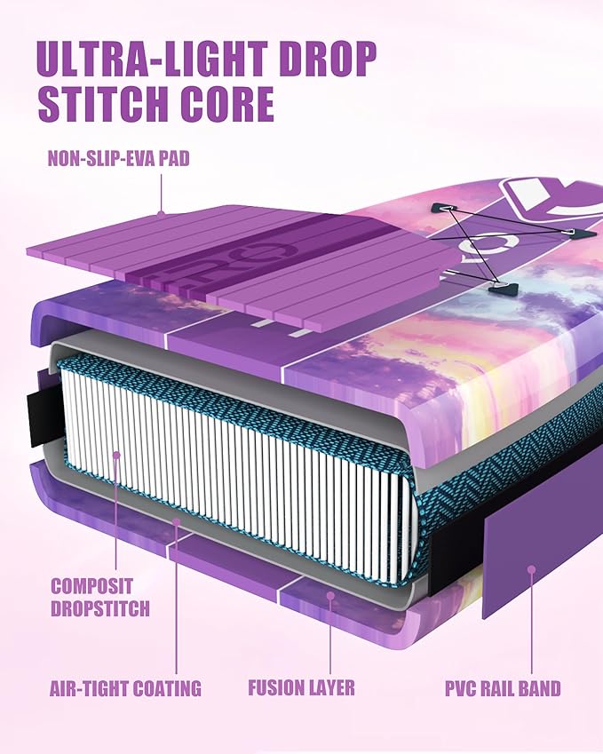 - 【Up to 400 LBS & More Balance Board with Extra Wide 33’’】Dixero runeed series inflatable stand up paddle board for adults is 1 or 2 inches wider than other inflatable sup board, up to 400 lbs weight capacity make it more suitable for 2 person paddle board, so you can take your family or pets together. The extra-wide design balance fishing paddle board creates an incredible stable experience for all skill levels
