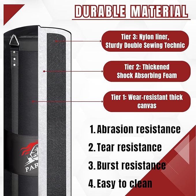 - 【Heavy Duty Canvas Muay Thai Bag】Muay Thai punching bag for men & women is built from high-quality & long-lasting canvas to ensure punching and kicking bag is strong enough to handle years of constant blows & rough handling; the reinforced stitching helps heavy kicking bag for adults retain its shape after being filled adults punching bag to full capacity