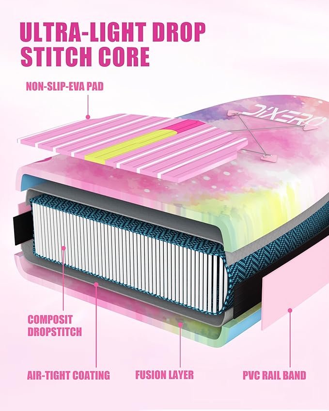 - 【𝗨𝗽 𝘁𝗼 350 𝗟𝗕𝗦 & 𝗠𝗼𝗿𝗲 𝗕𝗮𝗹𝗮𝗻𝗰𝗲 𝗕𝗼𝗮𝗿𝗱 𝘄𝗶𝘁𝗵 𝗘𝘅𝘁𝗿𝗮 𝗪𝗶𝗱𝗲 𝟯3", 𝟮 𝗥𝗶𝗱𝗲𝗿 𝗙𝗿𝗶𝗲𝗻𝗱𝗹𝘆】Dixero runeed series inflatable stand up paddle board for adults is 1 or 2 inches wider than other inflatable sup board, up to 350 lbs weight capacity make it more suitable for 2 person paddle board, so you can take your family or pets together. The extra-wide design balance fishing paddle board creates an incredible stable experience for all skill levels