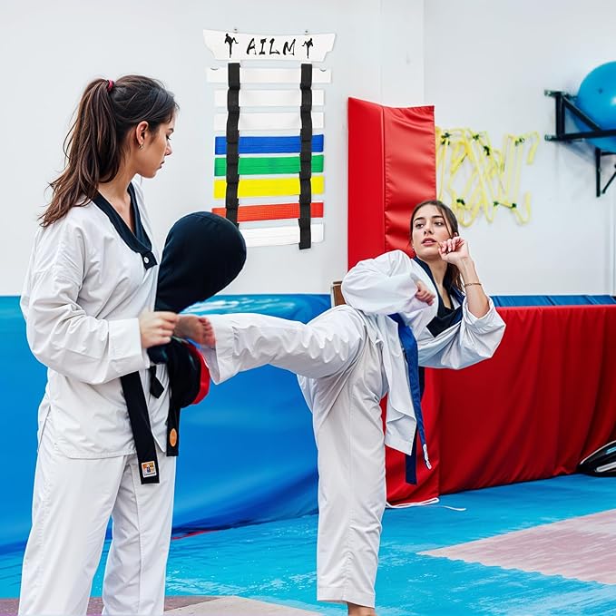- 【8-Belt Capacity】The karate belt display rack is a canvas for kid's journey. It serves as a reminder of how far he’ve come and motivates kid to keep going. 8-Belt Capacity, no more, no less. Able to accompany your child to the highest segment.