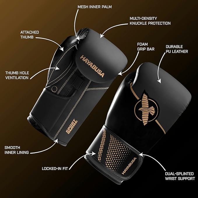 Hayabusa Sport Boxing Gloves for Men and Women – Dual-Splinted Wrist Support, Multi-Density Foam Padding, Contoured Fit – Ideal for Boxing, Kickboxing, and Muay Thai Training