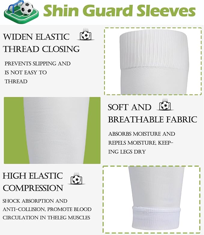 - Supportive Compression Leg Sleeves : Soft, stretchy shin guard sleeves stay in place during runs and kicks.The sweat-wicking fabric keeps skin dry and comfortable, reducing irritation.Designed to support muscles without feeling too tight