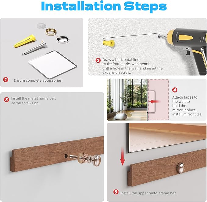 - Clear Reflection and Safe Design:These home gym mirror are made of HD float glass. They can show you clearly and are strong. The edges of the wall mirror are polished for safe use