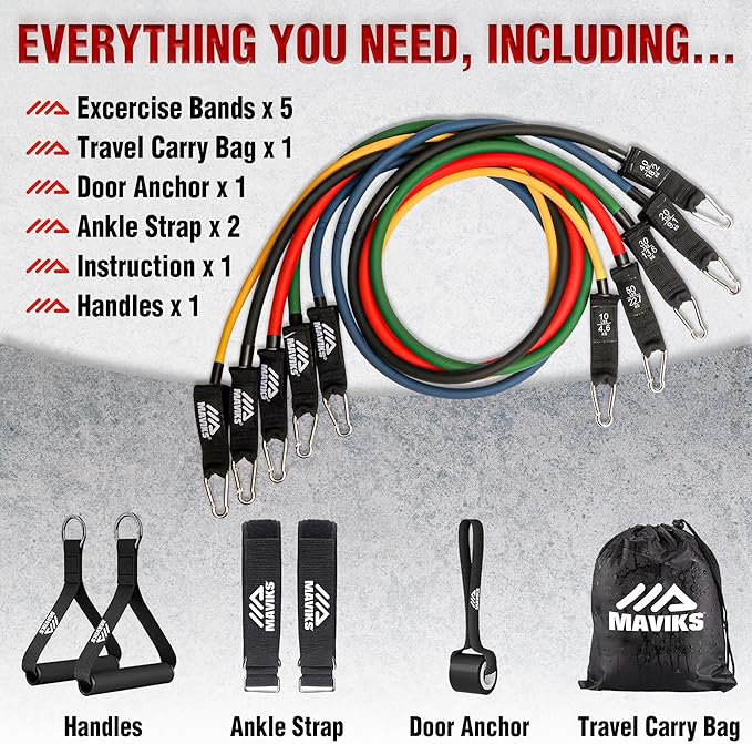 - πππππππππ ππππππππππ ππππππ: Our resistance band set of five color-coded (Green: X-Light, Blue: Light, Yellow: Medium, Red: Heavy, Black: X-Heavy) caters to all fitness levels. Ideal for beginners and pros, they adapt to various workout intensities for a personalized fitness experience.