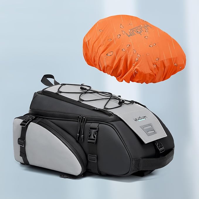 - 4-in-1 Versatility: Rack, Backpack, Sling, Luggage TagSecure bike rack bag Hands-free rucksack, Quick-grab shoulder duffle, Travel-ready add-on for suitcases, Perfect for cyclists, commuters, and hikers."