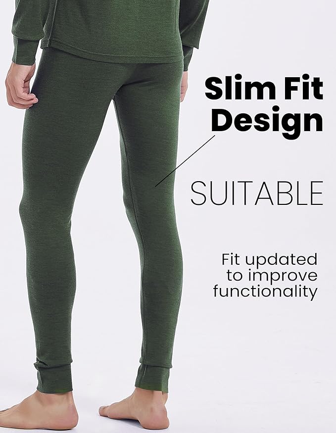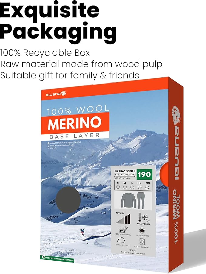 Iguana Mens 100% Merino Wool Base Layer Sets for Ski Lightweight Thermal Underwear