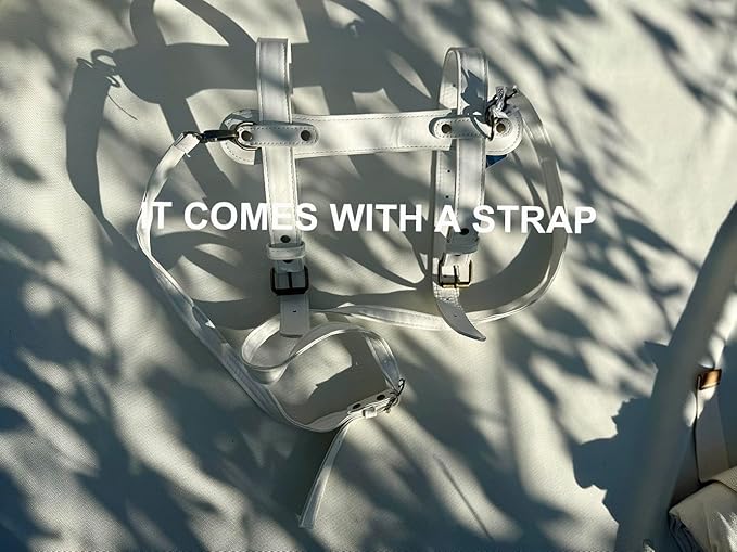 - Includes: 1 white canvas mat, faux leather handle/should strap, and webbing strap