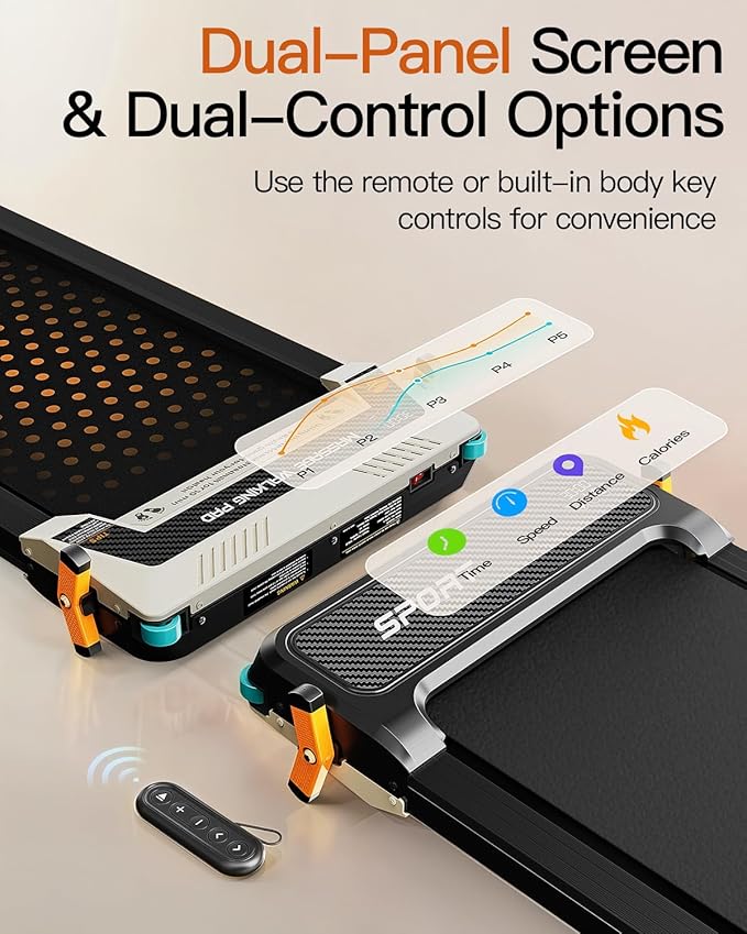 - 【Dual-Panel Screen& Dual-Control Options】Our walking pad boasts both on-machine buttons and a remote control for easy operation, paired with dual screens showing treadmill and massage settings, enhancing your fitness experience.
