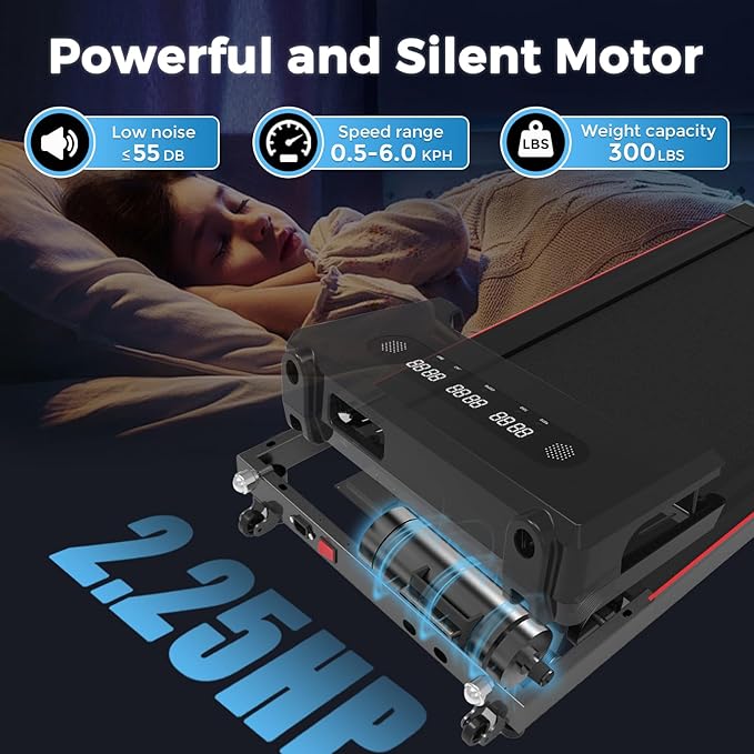 - LED Display Screen and Easy Remote Control: The LED display screen is clear and easy to read, allowing you to easily view exercise time, calories, steps, speed, and distance while exercising. The remote control operation is convenient, allowing you to easily control the walking pad treadmill.