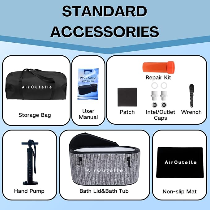 - COMPATIBLE WITH CHILLERS: The Airoutelle cold plunge tub can easily connect to a water chiller (not included). This setup automatically maintains the ideal cold water temperature, thus cutting ice costs. And it is also compatible with water filters, compressors, and physical therapy devices (not included). Both using a chiller and adding ice are effective ways to keep the water cold.