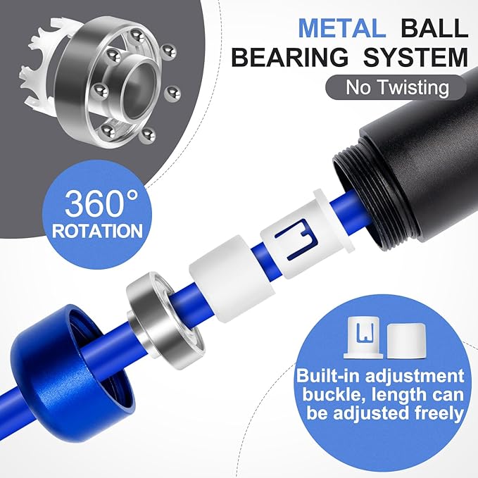 • Stable and Durable: The weighted jump rope with a Built-in metal ball bearing system ensures 360° smooth rotation with no winding or knotting, allowing you to focus on your workout without disruptions, helping you get a better workout with the same effort and achieve your fitness goals faster