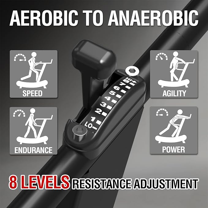 - [Burn More Calories] Burns 30-50% more calories than traditional treadmills, greatly activating core muscle groups and improving workout efficiency. Switch between 8 resistance levels for a custom workout