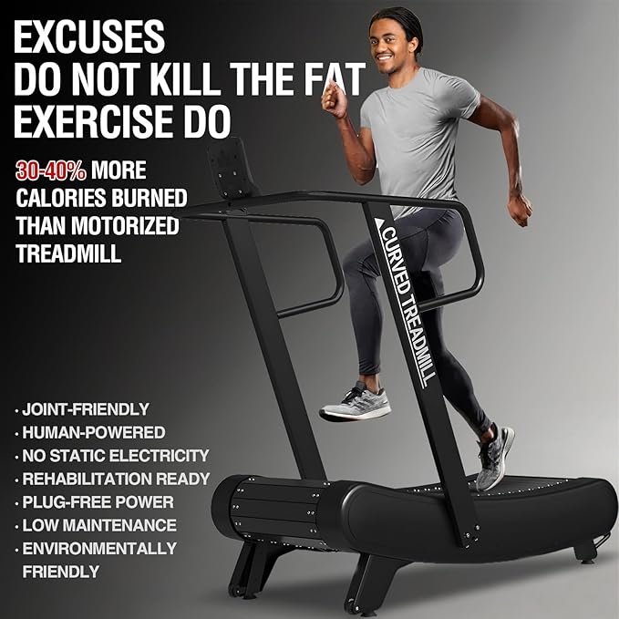 - [Better Running Form] Curved shape of the treadmill promotes a more natural running form and encourages a forefoot strike rather than a heel strike, which reduces impact on your joints. This mimics outdoor running conditions more closely than a flat treadmil